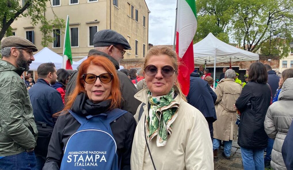 In Ghetto, il Sindacato giornalisti Veneto c’era, in rappresentanza anche di Articolo 21, a ribadire che tra i primi obiettivi del fascismo, al pari di ogni dittatura, ci sono stati e restano l’oppressione della stampa, il controllo dei mass media, l’azzeramento del pluralismo, l’uccisione di qualsiasi voce contraria al pensiero unico, la sostituzione dell’informazione con la propaganda. E che non è certo un caso se le madri e i padri costituenti hanno voluto inserire nella Carta fondante della nostra Repubblica quell’articolo 21 che tutela la libertà di espressione e che recita “la stampa non può essere soggetta ad autorizzazioni o censure”, fissando nel contempo insieme al dovere di cronaca, il diritto delle persone a essere correttamente informate.