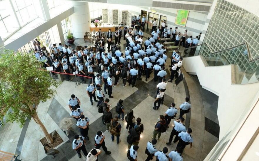 Circa 500 gli agenti mobilitati dalle 7.30 (l’1.30 in Italia) negli uffici del tabloid bloccando ingressi e uscite, con un mandato che «copriva il potere di perquisire e sequestrare materiale giornalistico» utile alle indagini. Arrestati anche il direttore Ryan Law, l’ad della hoding Next Digital e altri alti dirigenti.