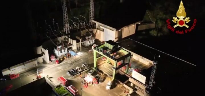 Nella foto dei Vigili del fuoco la centrale di Bargi a Suviana nel bolognese