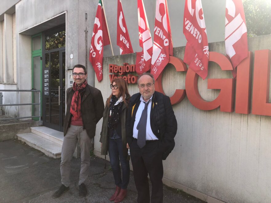 Oggi una delegazione del sindacato dei giornalisti, composta dal presidente della Fnsi, Giuseppe Giulietti, dalla segretaria regionale e dal vice viario Monica Andolfatto e Massimo Zennaro, ha incontrato il segretario veneto della Cgil, Christian Ferrari.