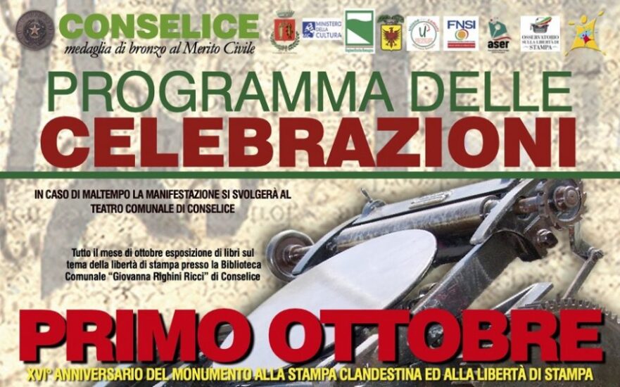 L’appuntamento è in piazza Libertà di Stampa, alle 10, dove interverranno la sindaca di Conselice, Paola Pula,  il presidente dell’Osservatorio sulla libertà di stampa, Paolo Berizzi,  il presidente provinciale Anpi, Renzo Savini,  il presidente Aser, Matteo Naccari, il segretario generale Fnsi  Raffaele Lorusso  e il presidente della Provincia di Ravenna, Michele De Pascale.